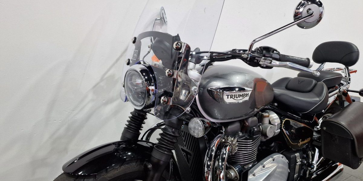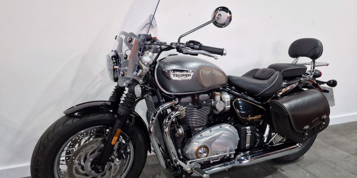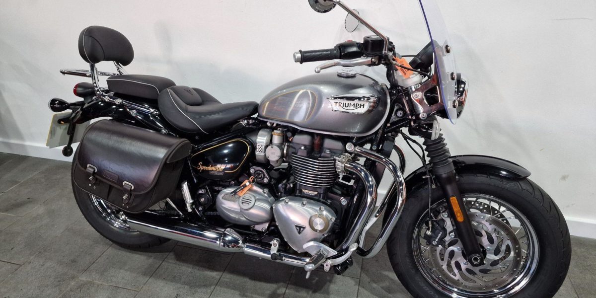 2022 Triumph Speedmaster 1200, supplied with a screen, leather panniers, heated grips, engine bars, sissy bar and carrier and AUX PSU. Stylish comfortable, and relaxed cruiser praised for its classic looks, torqued 1200cc engine and comfortable ergonomics. Vin BA8339. . Silver 2 seats. The North West’s Finest Family Run Business